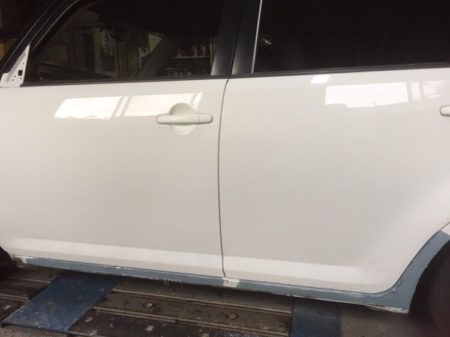 フロントドア下のサイドステップのヘコミ修正が終わりました。