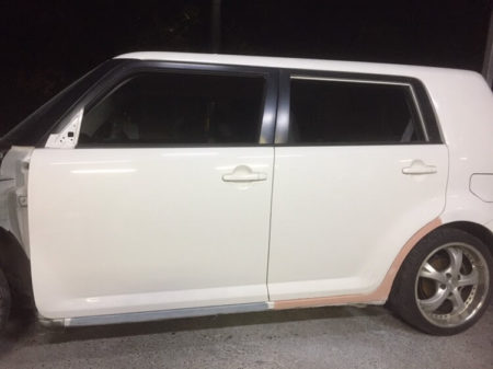 リアドア下の方は研磨した後にもう一度別のパテを塗ります。