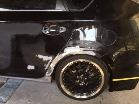 ▼同じようにリヤドアのキズの部分も補修のために削ります。